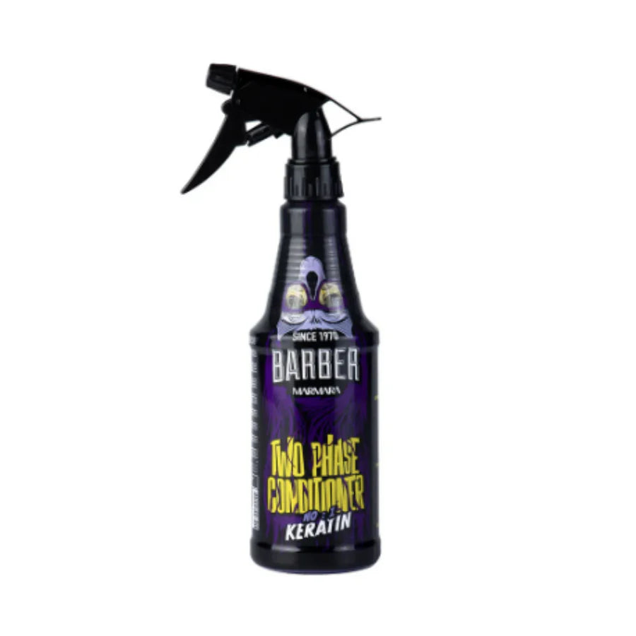 El BIFASICO de cabello con 2 fases cuida, protege y dona nutrientes importantes para obtener resultados visibles instantáneamente y más vitalidad. El bifásico Barber keratina desenredante, también sirve para un mejor peinado. Forma de aplicar: Agitar bien la botella para que la fórmula de 2 fases se mezcle bien, luego se extiende en el cabello húmedo o seco, peinar y no enjuagar.