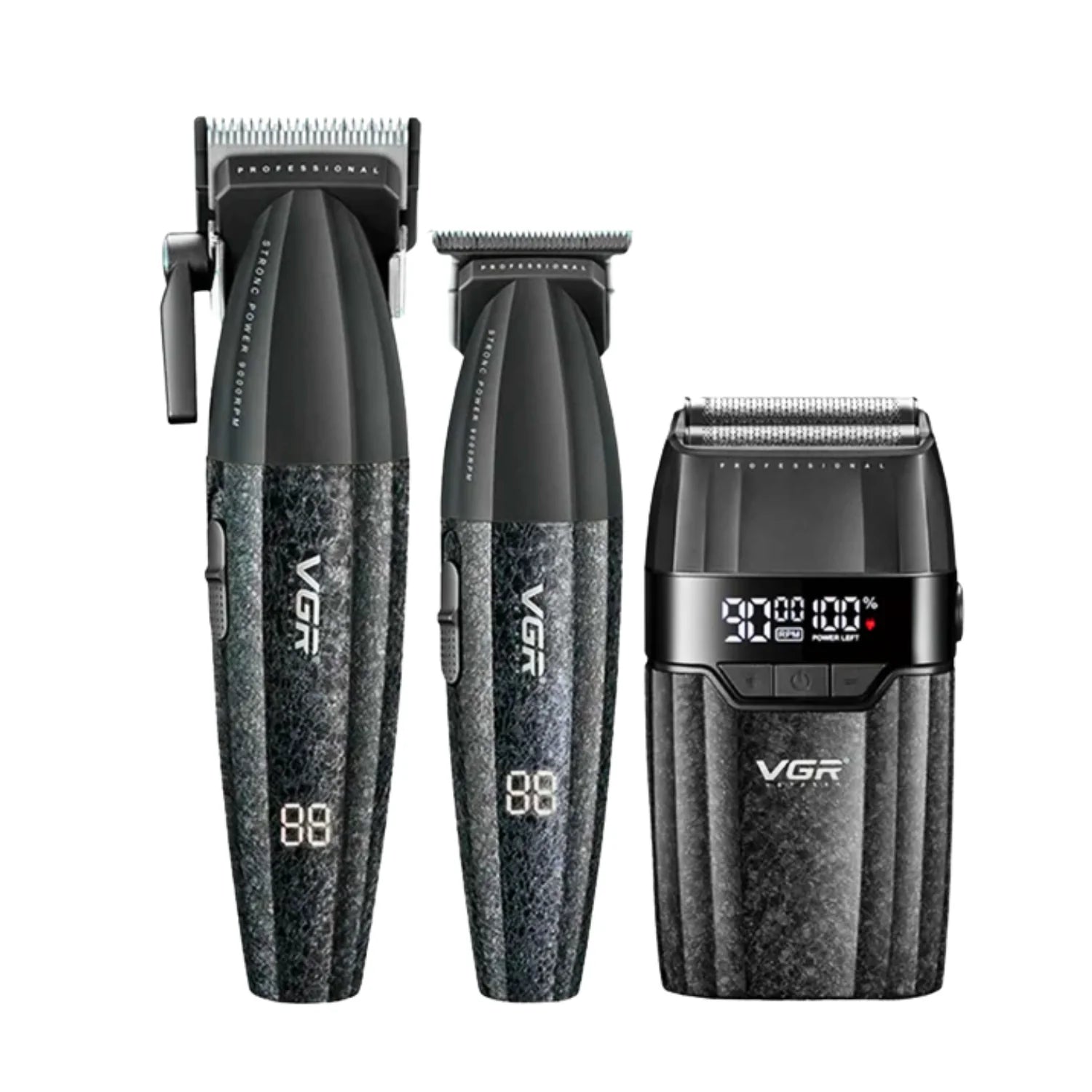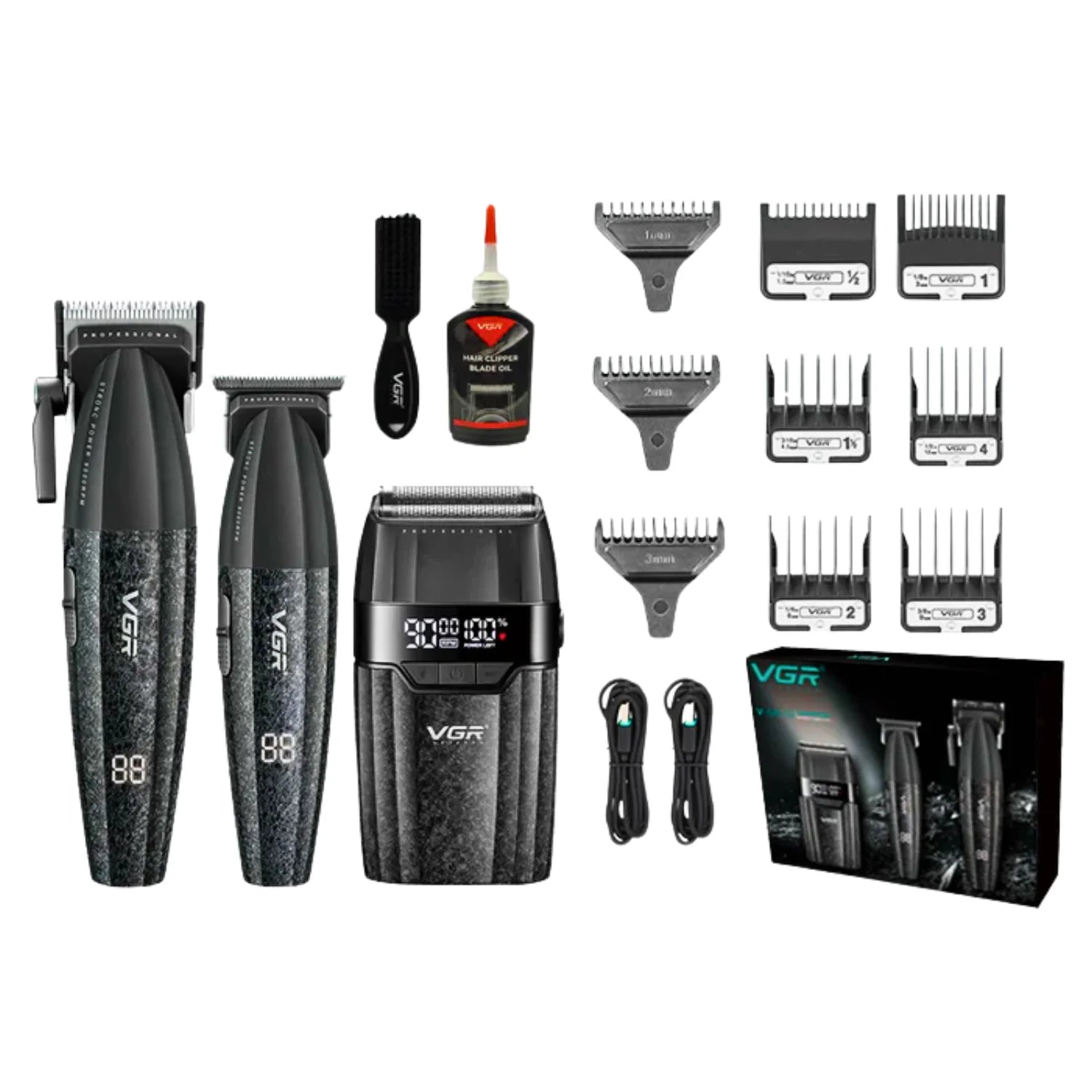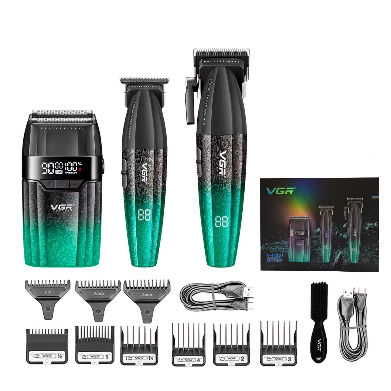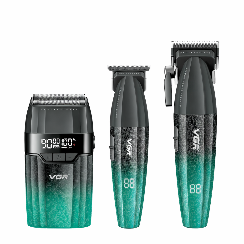 El VGR V-640S3 es un set profesional 3 en 1diseñado para ofrecer un rendimiento completo en el cuidado del cabello y la barba. Incluye una cortadora, una patillera y una afeitadora, cada una con motor de alta velocidad y batería recargable de larga duración. Es ideal tanto para uso profesional en barberías como para uso personal en casa, ofreciendo resultados precisos, rápidos y uniformes.