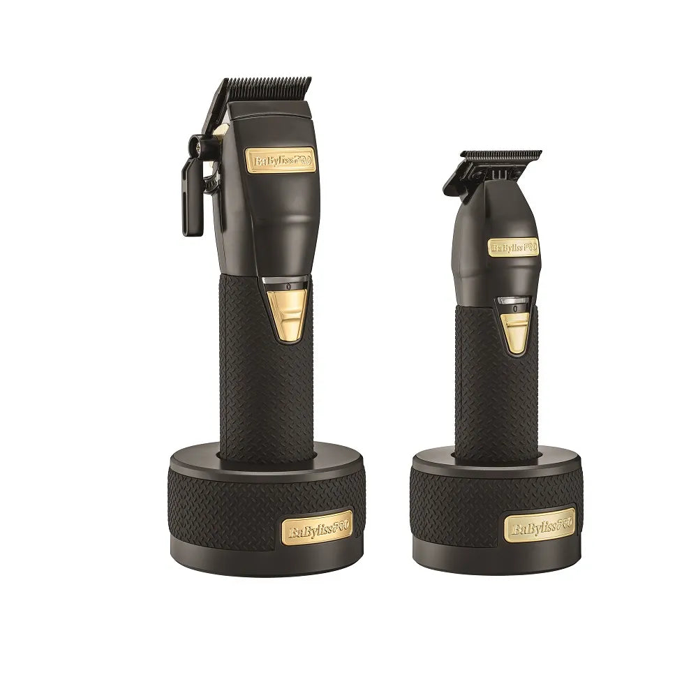 El Kit Limited FX Boost Collection Black BaBylissPro es un set profesional que incluye una cortadora y trimmer de alto rendimiento. Equipado con motores sin carbones de alta velocidad, baterías de iones de litio duraderas, cuchillas de grafito negro y hojas en T de dientes profundos DLC. Este kit presenta un diseño robusto de metal con mango ergonómico de goma texturizada para un agarre cómodo. Cuenta con palanca de ajuste de longitud y bases de carga de metal sólido. Compatible con modelos FX870 y FX787, brinda eficacia y durabilidad para optimizar tu estilo con precisión.